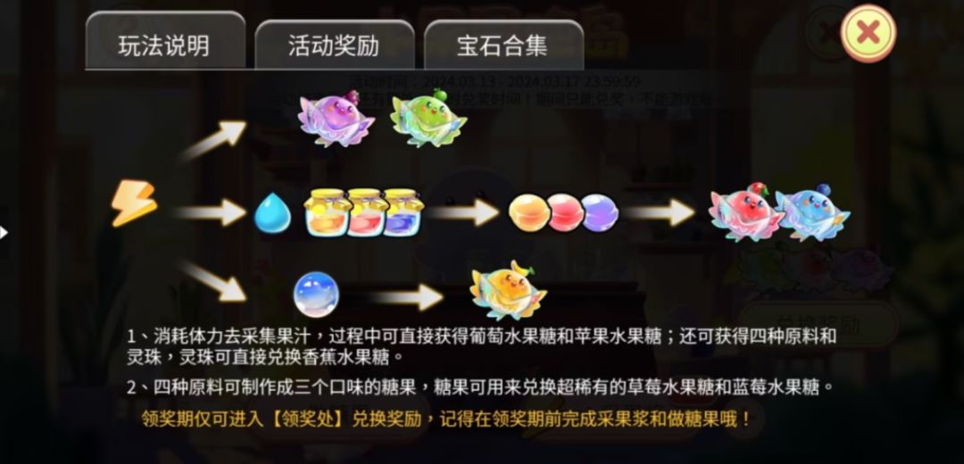 1、本活动分为三部分:采果浆、做糖果、兑换奖励。
