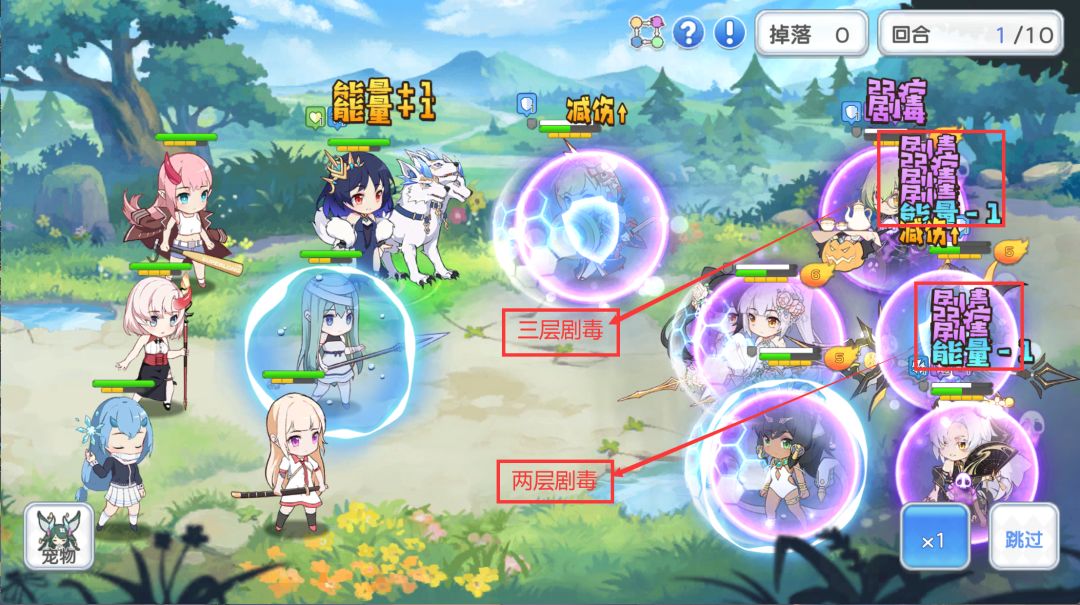 然后就出现了【剧毒】【剧毒】、【清除】、【剧毒】【剧毒】