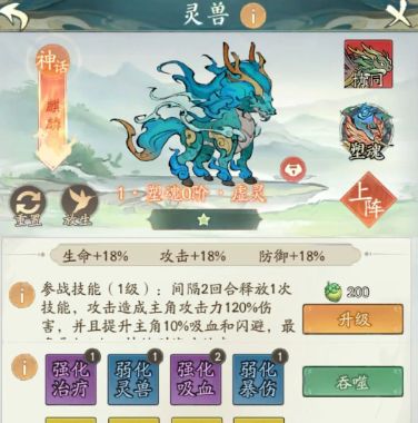 主选强化灵兽、威力、强化吸血、强化暴击,次选体魄、强化闪避、弱化灵兽。吸血和暴击是我们一开始为了稳定阵容首选的属性,因为如果选择闪避导致伤害不足,很有可能在吸血效果生效之前就被对方击败,所以弱化对方灵兽也是关键属性。