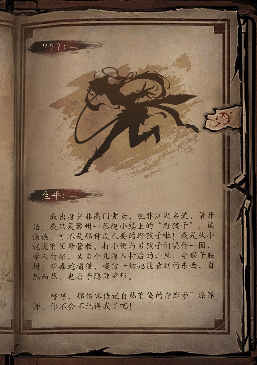 好久不见啦,涤罪师~近些日子时常能听到大人的名字,涤罪师已是江湖上赫赫有名的大人物啦!想必也结交了不少的义士侠客!不知道你是否还记得当初案察台的一位姑娘呢?嘿嘿,想想当初大人初来乍到还些许腼腆,没想到转眼之间就名扬天下!如有各种情报类工作都可拜托本姑娘哦~前提是大人还记得我,略!![[TapFamily_给你一拳]](https://img.tapimg.com/market/images/27ab3598e0c79a34499735f4fd827211.gif)