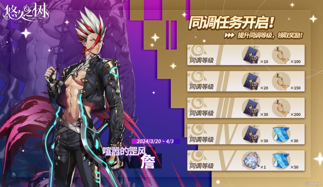 活动期间,提升新角色「喧嚣的罡风·詹」的同调等级,即可获取新角色的许愿签等道具奖励!将同调等级提升至4级,总共可获得许愿签·[喧嚣的罡风]詹×90。将同调等级提升至5级,可获得银色誓言×1!