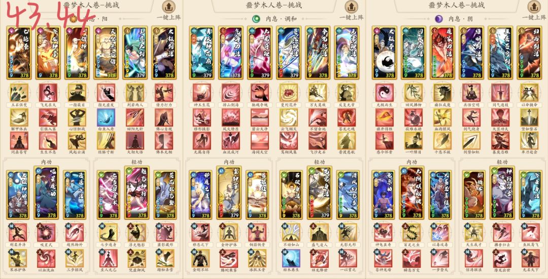 44层,自己换顺序调和奇、吸内、阴剑,把调和奇“腾蛇”换成“不食烟火”或“换骨之息”,其它不用动,也是赌花间隙手动过了。一场用调和奇,不是奇门玩家自己补强。