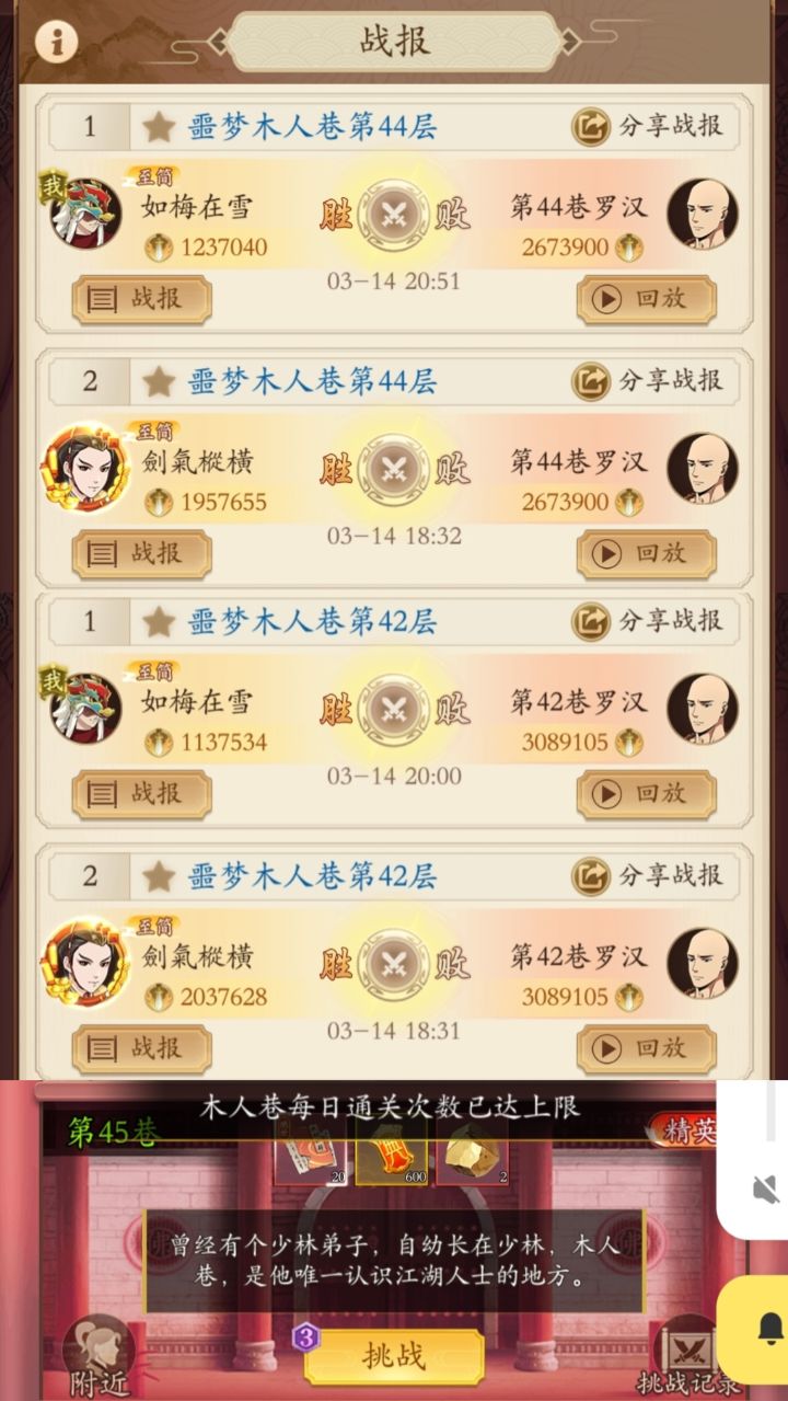 42层,一场阴剑过不了,调和奇套路很稳不想动,所以引进阳刀,不难,手动过。