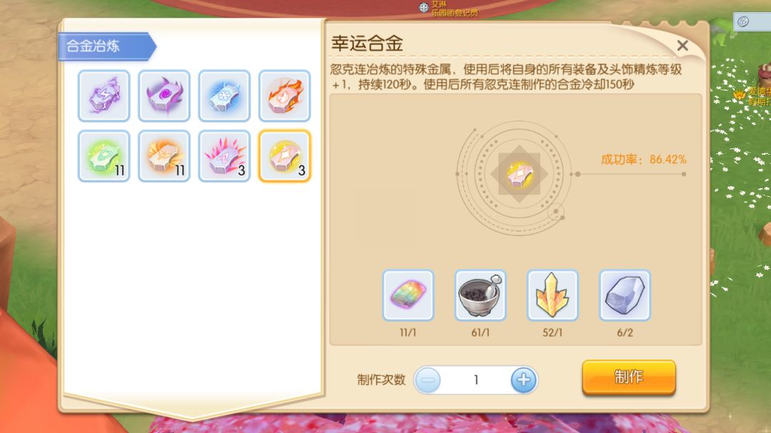 大合金提升15%,持续6分钟(4种属性不共存,是4选1)