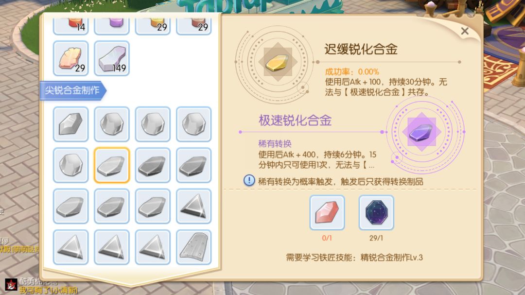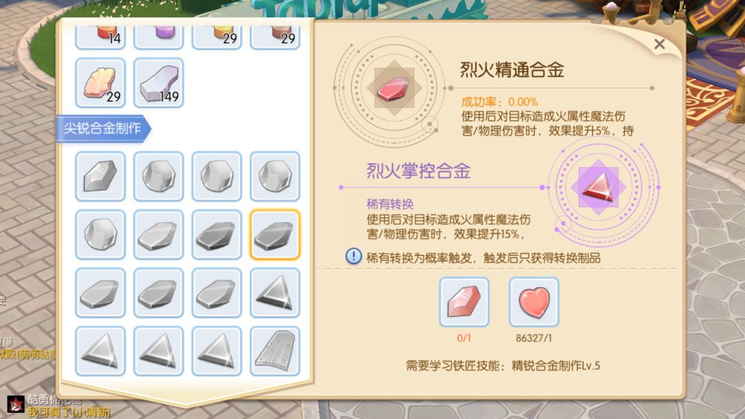 提供:小合金提升5%,持续30分钟(4种属性不共存,是4选1)