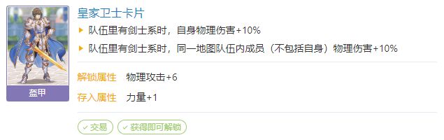 佩戴适配:卡片10盔甲:皇家卫士卡片