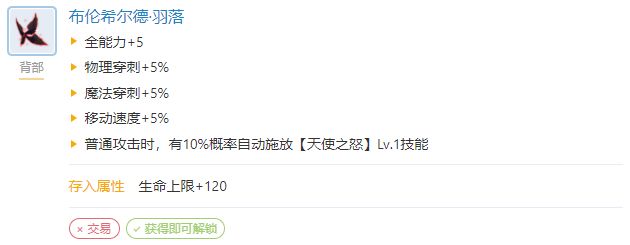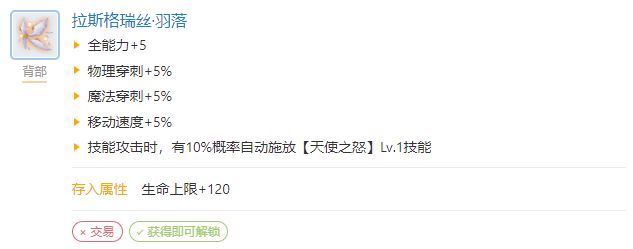 技能适配: 头饰12背部:拉斯格瑞斯羽落