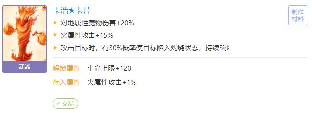 使用情况:任意攻击都可触发,对火属性输出有用