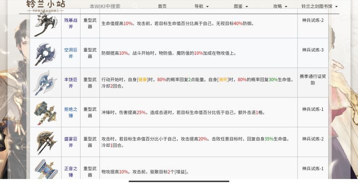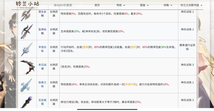 本文会优先将通用性高,升星曲线顺滑的武器排更高优先级,理解了铃兰的伤害公式后,我们可以得知攻击加成和生命的收益高,防御由于受减益影响较大,收益泛用性低于生命,丰饶武器不加入评测(强但是亏面板,回能特化装备可以排t0),图来自铃兰之剑wiki。