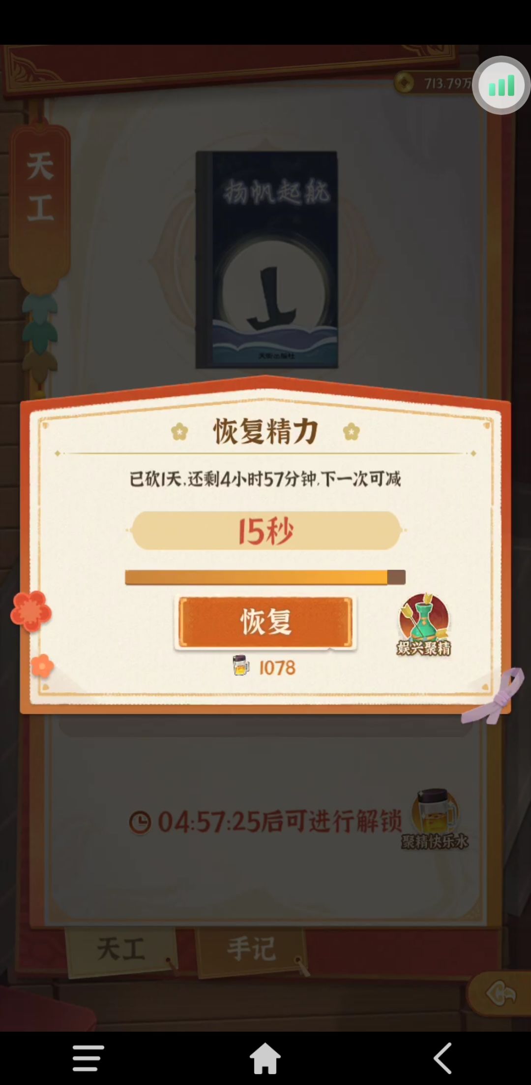 3.天工冷却用了100个免费快乐水后,效果第一次断层式降低(图2-3);再用900个以后,直接无效(图4-5)。所以建议每天至少刷100个,可以缩短不少时间。