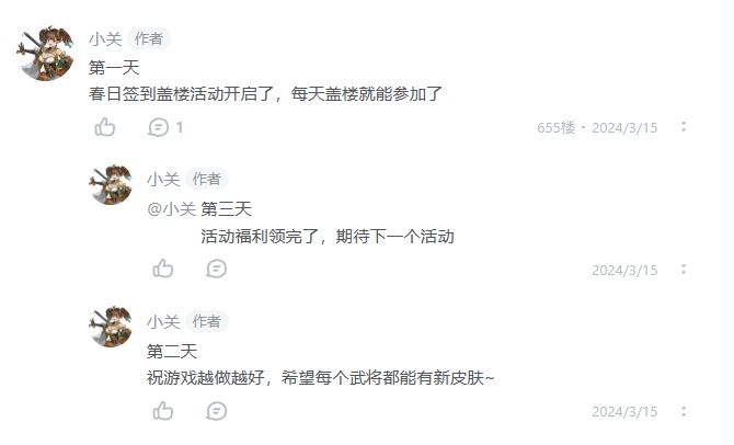 指定帖子下方盖楼回复,回复内容可以对游戏的祝福/建议等等