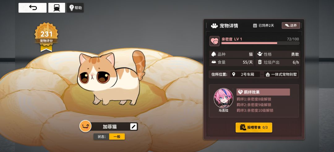 顺带一提,列车里宠物是可以配对饲养员的,亲密度到了额外buff记得早点养。怕有人不知道