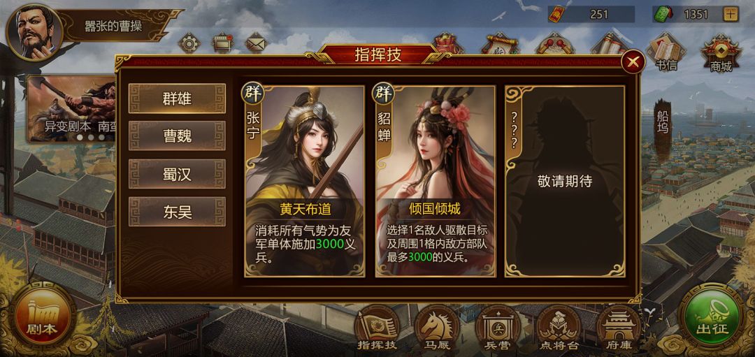 指挥技界面布局进行优化,指挥技武将阵营归属、技能描述 展示更加直观;