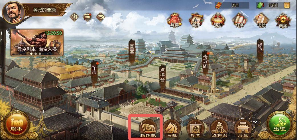 更新后,治所界面下方新增指挥技功能按钮,各位主公可以更快捷的进入指挥技界面。