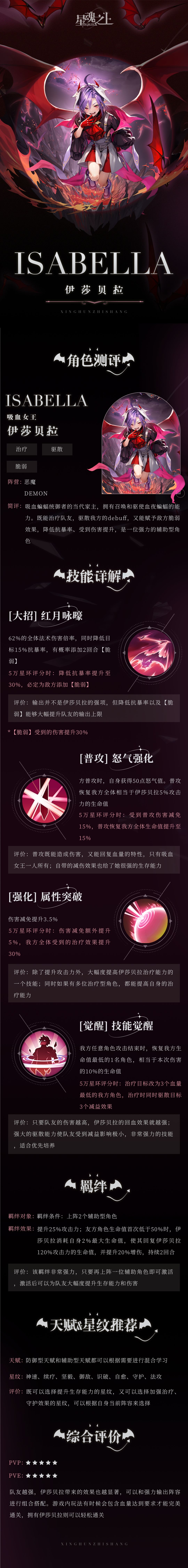 在遥远的星魂大陆东方海域,深渊裂缝的黑暗中,隐藏着一个强大而神秘的吸血女王伊莎贝拉。她出生于恶魔中的贵族吸血蝙蝠一族,这种种族的嫡系血脉拥有着赋予其他人自身血脉的能力。而伊莎贝拉,是这个族群中罕见的统御者。