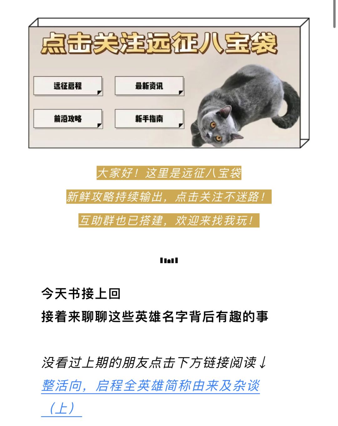 【远征八宝袋】整活向,启程全英雄简称由来及杂谈(下)
