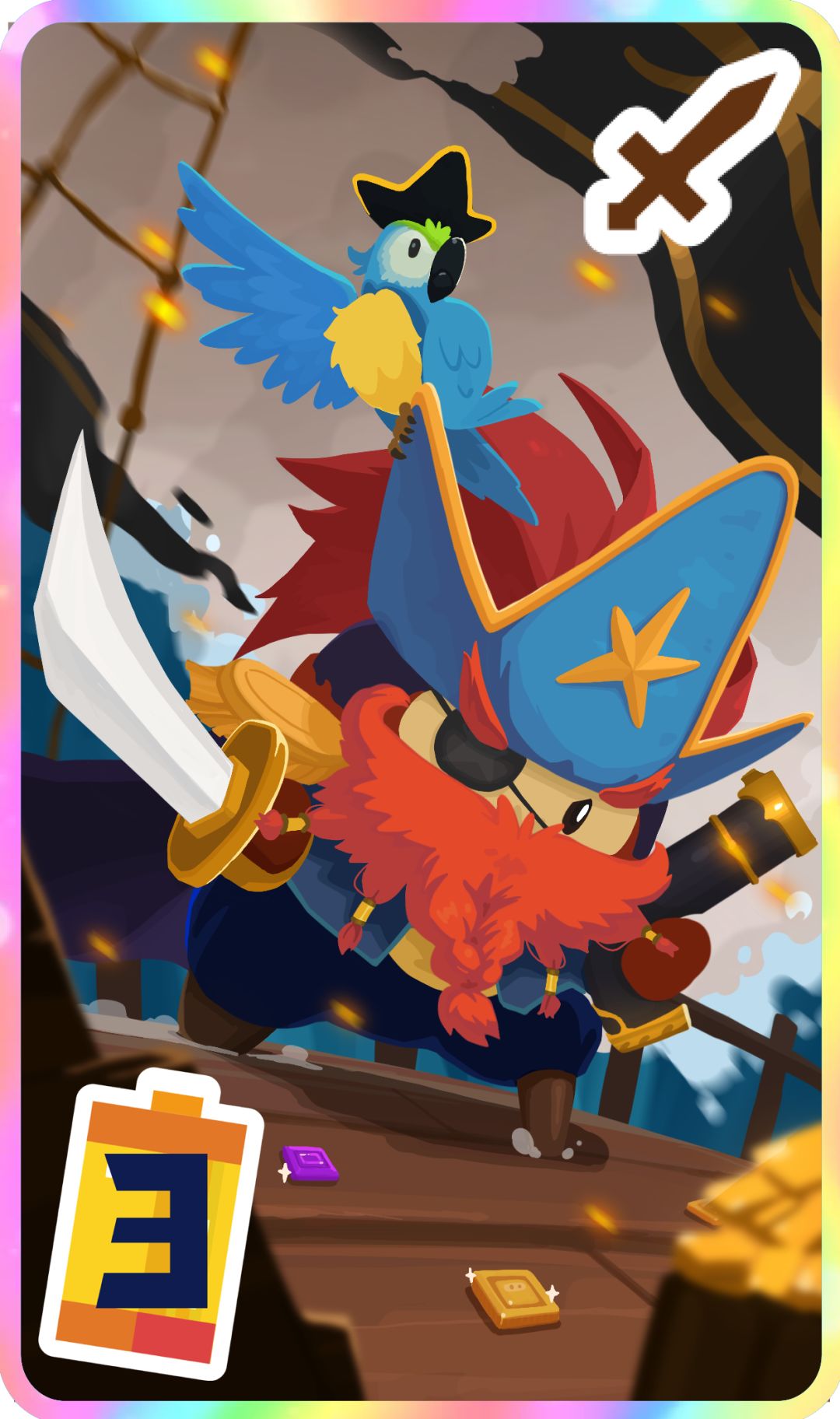 泡泡擅长制造飞跃泡泡,帮助队友越过障碍,是海蛇号上唯一的炮手。不过由于船长对接舷战的狂热爱好,它发射的队友比炮弹还要多......战斗之余还在备用的泡泡枪里偷偷装满了朗姆酒,好孩子不要学哦。