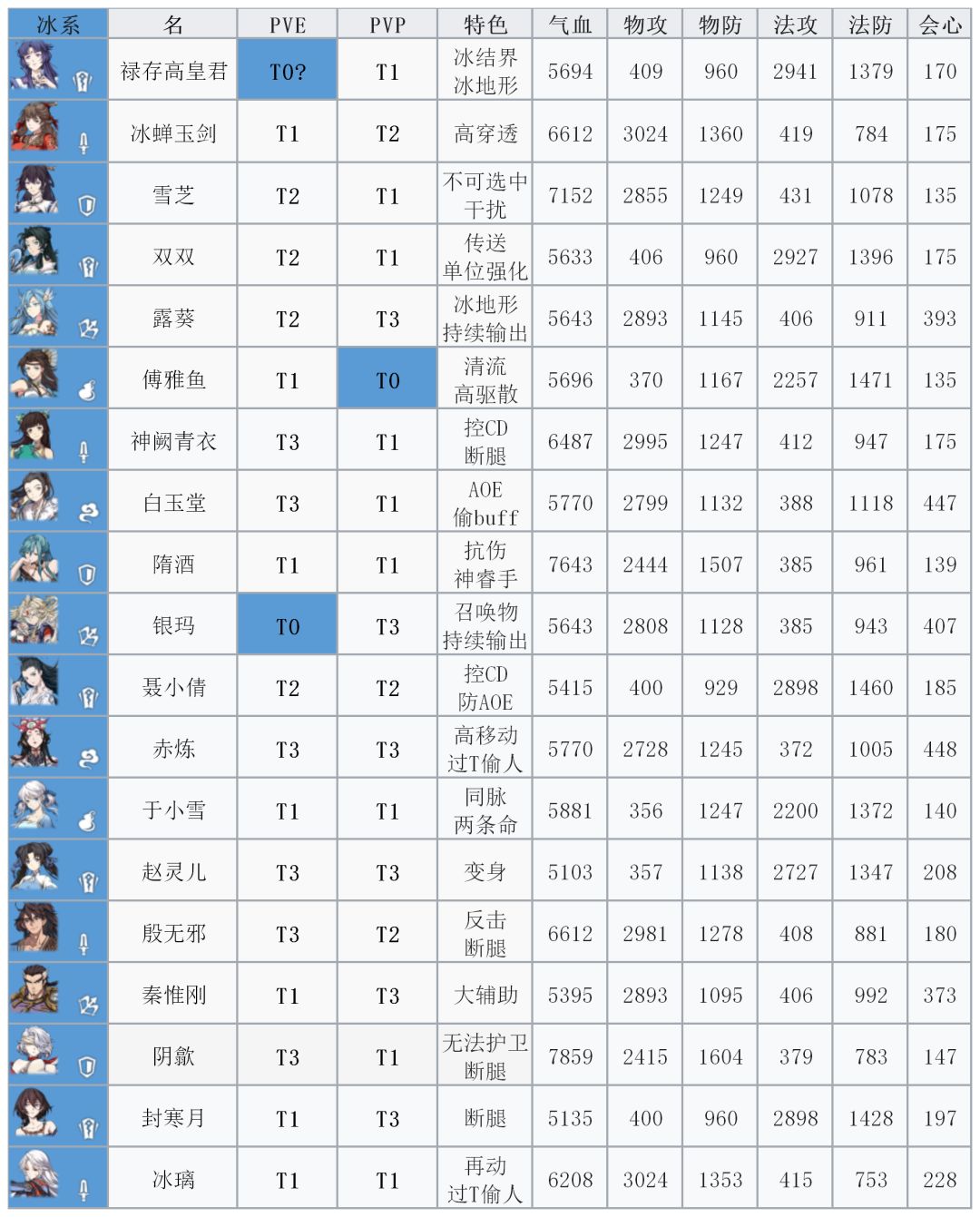 T1:近期出场率较高或泛用性广