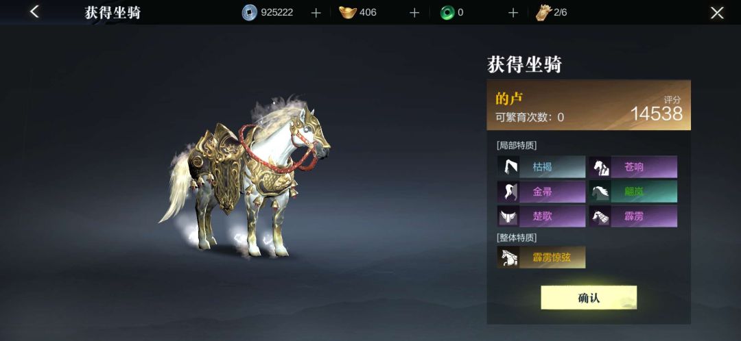(1) 坐骑系统:马匹系统类似于宠物系统,任务送的马匹无需培养,繁育要看两匹马各有什么资质,主要靠的还是第二天到了30级的时候开放的伯乐相马系统,这个里面出好马的概率很大。