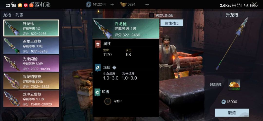 (2) 强化分为4段,每段最高10层,到每段10层时候需要同样的武器进行突破,强化材料也随着武器品质提升而增高,锻造和强化材料可以通过三国汇演和商店购买获得。例如1阶段10层时候需要1阶10层的武器作为副手进行突破,当武将60级时候戴的30级武器是不可升级到60级的武器,但是可以通过重铸为其他武将的武器,给其他武将使用,所以锻造的每把武器都是有用的不怕用不完浪费。