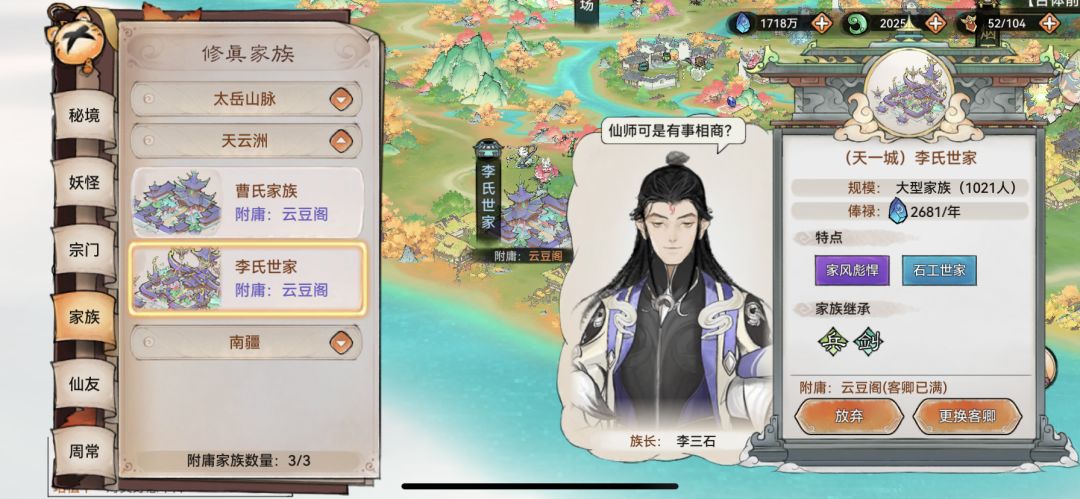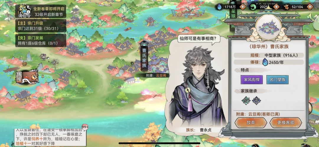 第七 好弟子招聘 弟子的出处最好有三个地方 1 普通招聘,基本很少出好的词条和体质,当然欧佬除外,2家族 基本好的弟子都是从这里出来的,所以家族要多刷,驱逐完后不用担心,5点钟会出新的家族,家族词条最好是人才辈出(这个减少招聘CD,别人8小时,你只要一般时间,量变到质变)接这是看玩什么,主流都是天会剑,五行剑,五行蝉,所以家风剽悍,再有就是有蝉的也要保留,这只能比较少,所以词条选择 人才辈出+家风剽悍/名门望族。目前有两个的可以用到毕业。第三 仙缘人物抽取 这种要有策略,存满500再抽,当然最好是650(仙缘商店可以解锁最高等级和买好的功法等等)并且要确定抽什么。每个人物都有特色看搭配,要有自己的想法,多看看帮二帮三榜四的玩法,第一不看?人家都是大佬或者大能,看他很容易歪。第四 特殊令牌,这种完成任务或者氪的等级到了会送。
