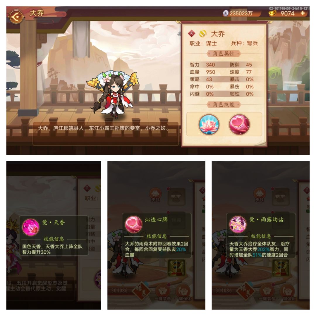 邓艾没有成型之前,可以用到,主动的满专属加速都是51%,区别只在于4星是单体奶,5觉是全体奶所以作为过渡辅助将,大乔是必不可少的存在。