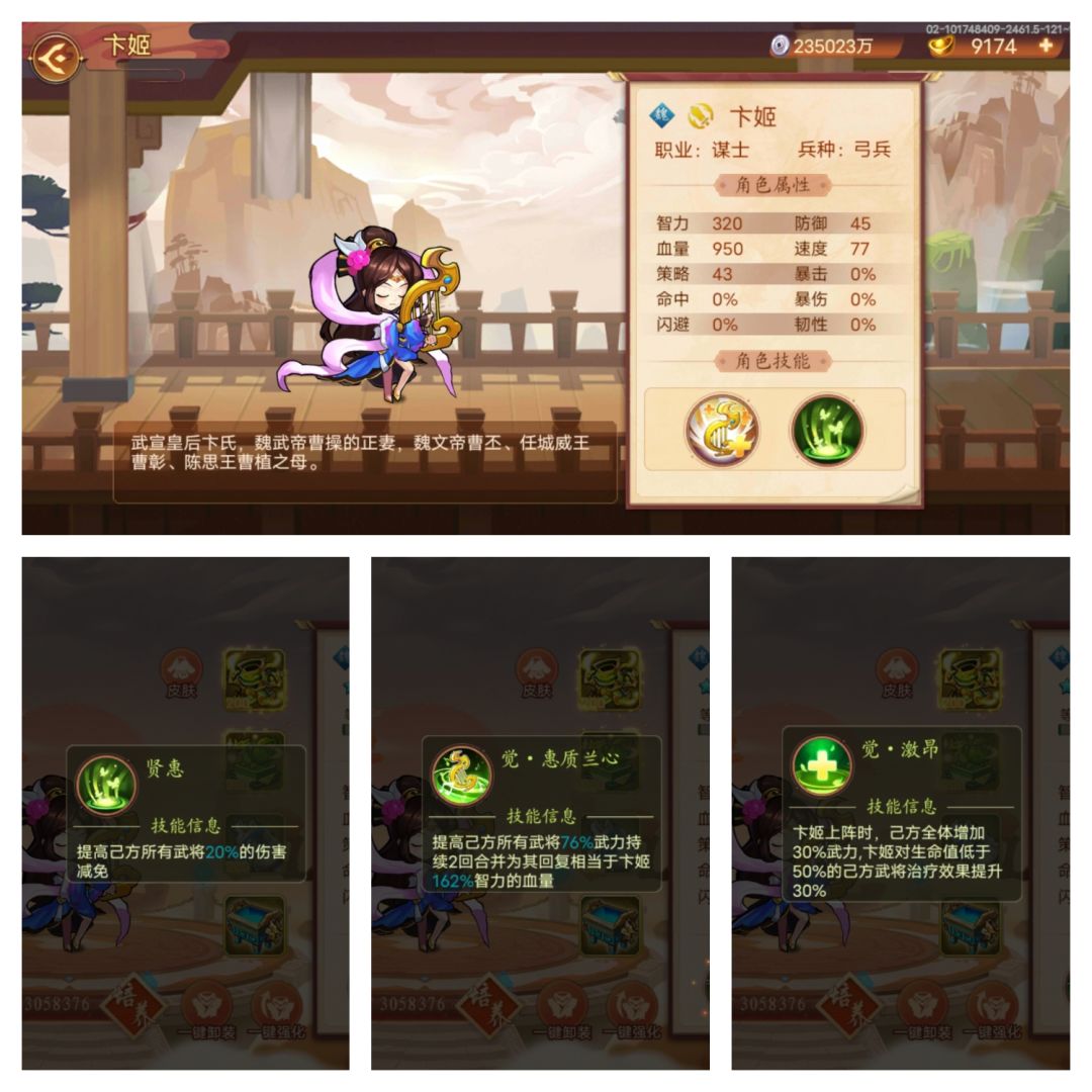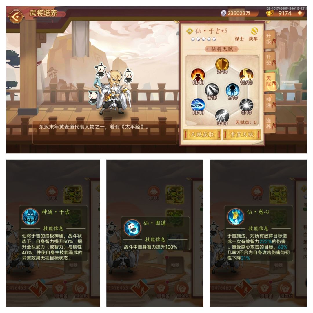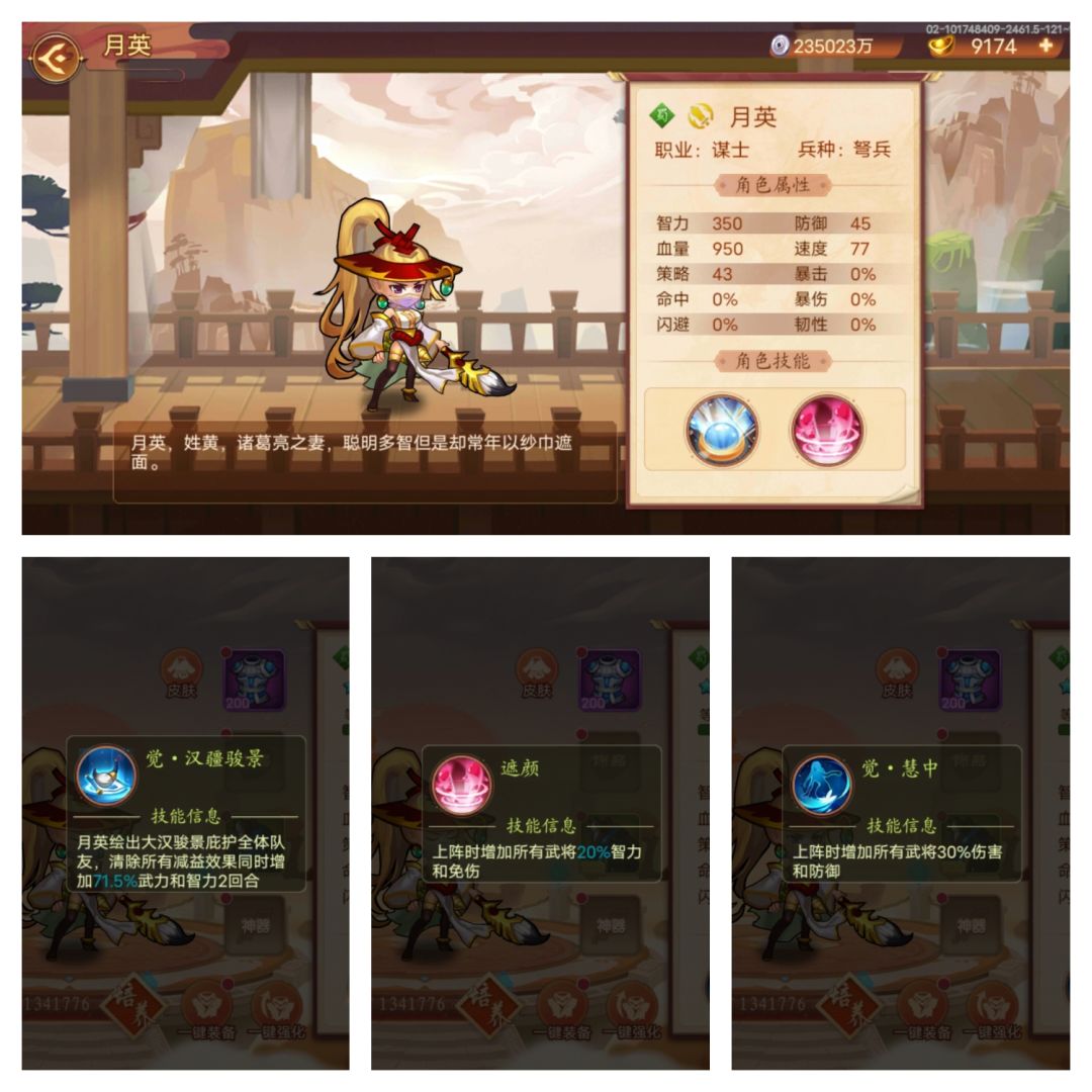 主动可以降低敌方41%防御和速度,闪避是平民最高的,专属+逐日鞋,最高可达60%,八卦阵必上的辅助,新手可以用用,如果不往仙赵云方向去,最好不要花太多资源培养。
