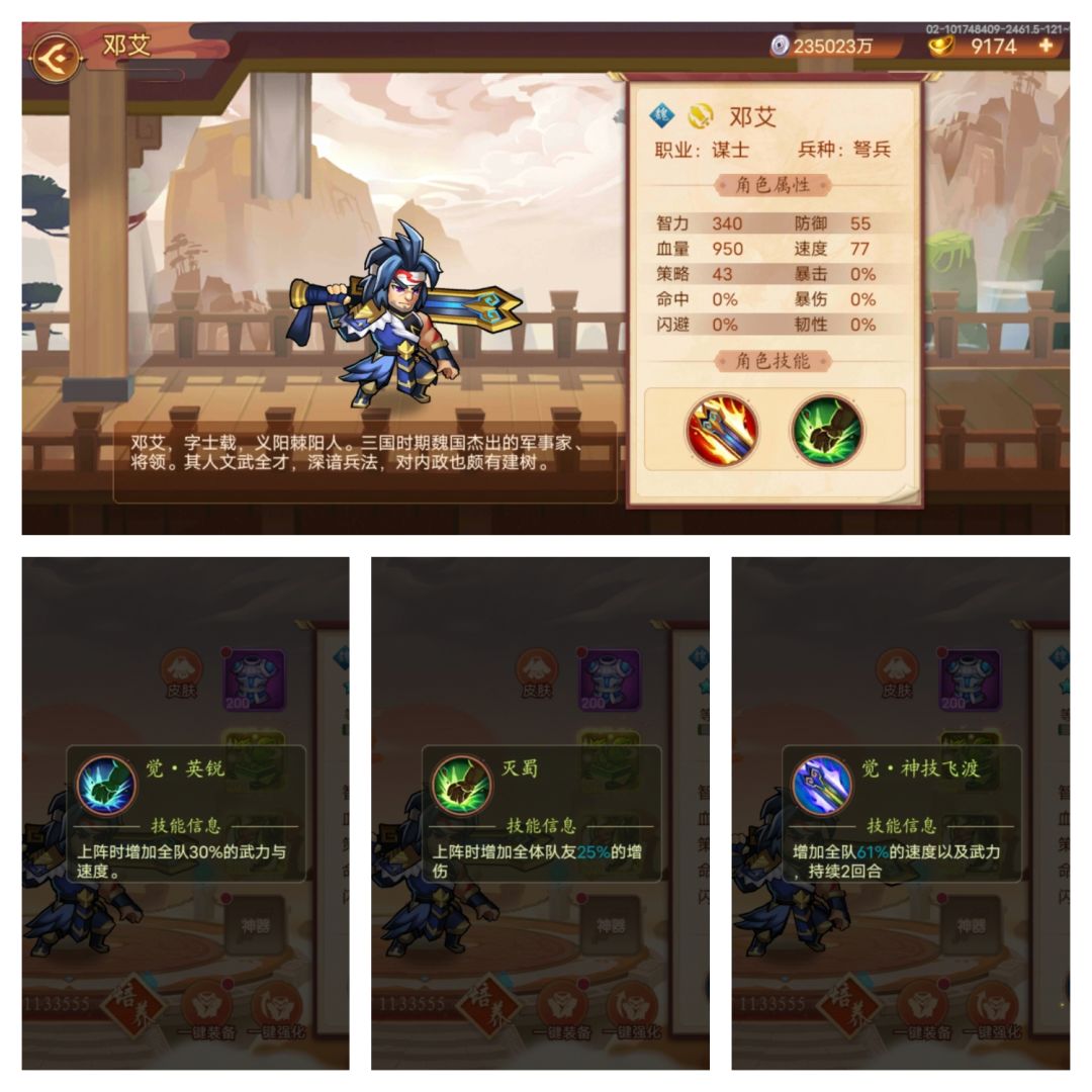 游戏最重要的就是速度,关键时刻能决定生死,邓艾武力提升也非常高,一速先手带动全体增速,作用非常大,平民必不可少,共鸣最高28武力,15增伤,前面很多副本都靠他带过。PⅤP速度流必上。(建议第一个培养)