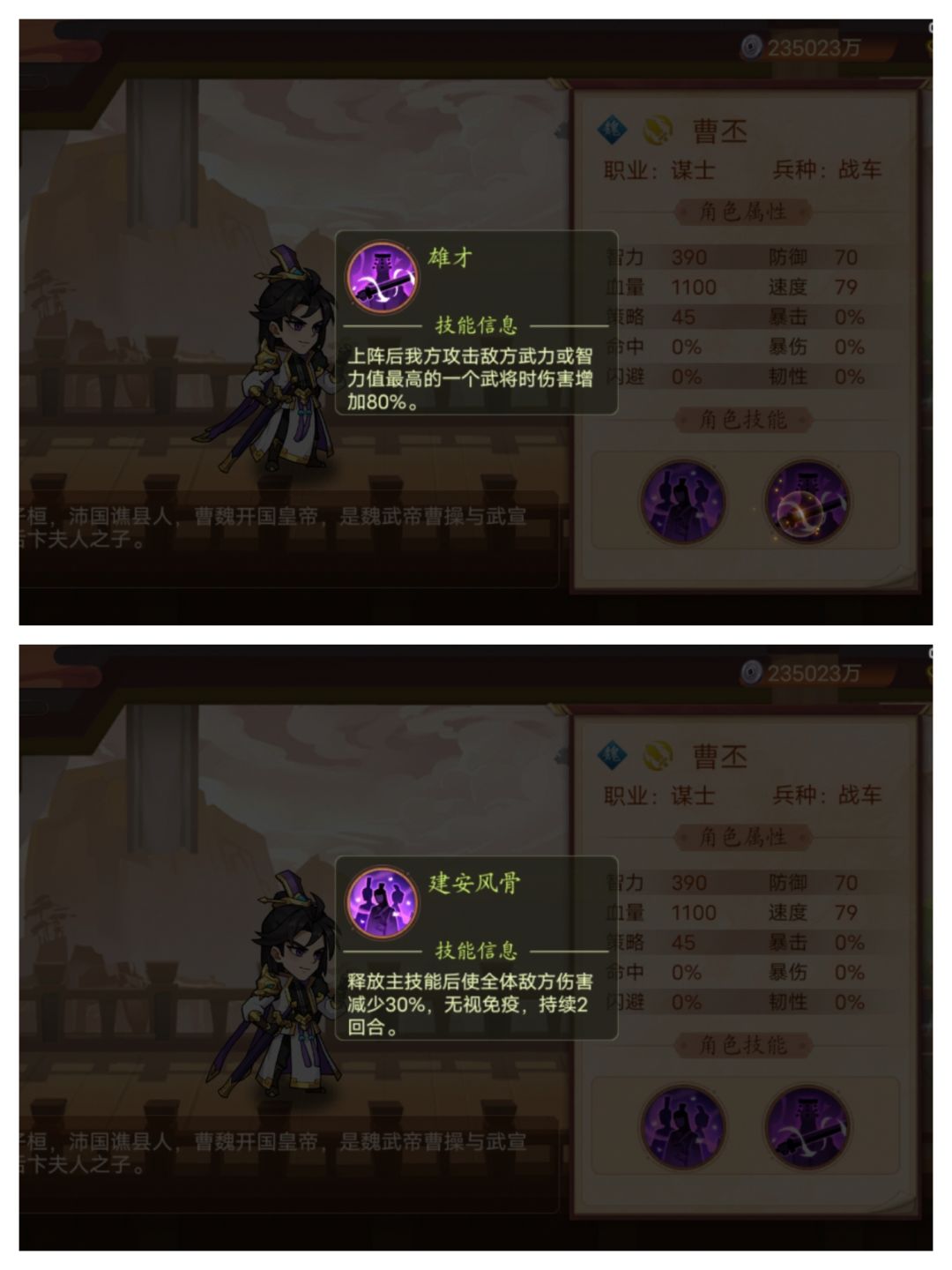 (5)没有无视防御(默认平民无盘古),老曹满配可一定程度改善,但他们两个培养资源冲突了,两个都养的话要很长时间,毕竟是白嫖的,一般都是神曹操培养先,如果不是真爱党就选择培养神曹操