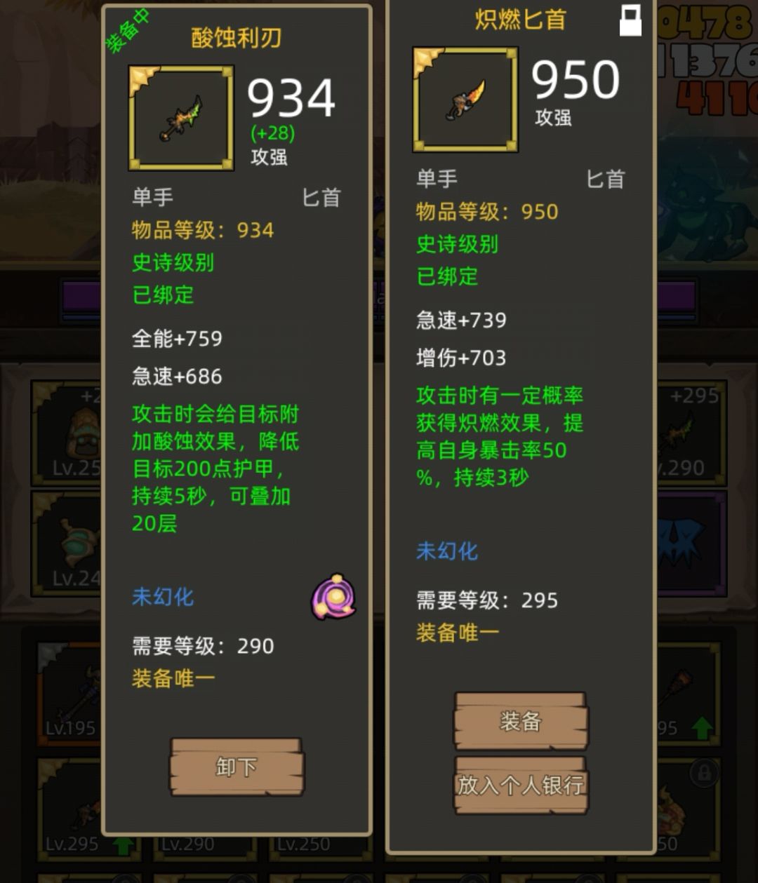 新出的这两把副手都挺不错,求稳就用减甲的,暴击副手偶尔会很快,看脸。(测试服老图,正式版破甲匕首也一样好用)