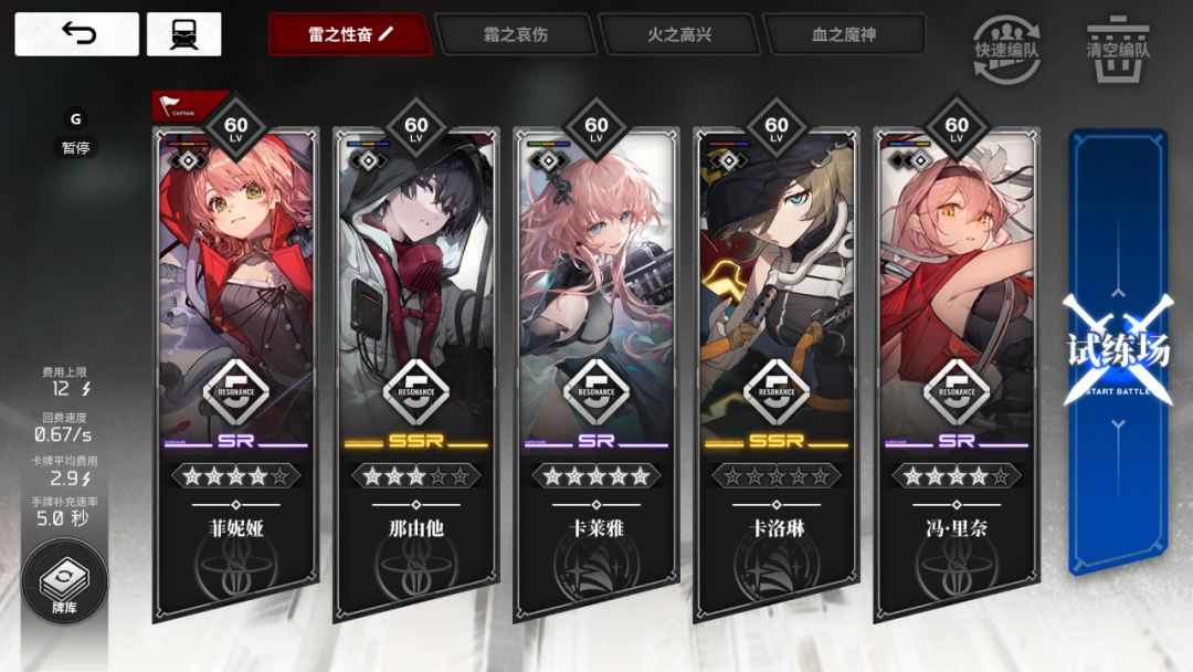 4.此队伍对等级、装备都有需求,因此在前期开荒中,较难越级,不过换那由他当队长也能越,但那就不是弃牌雷了。