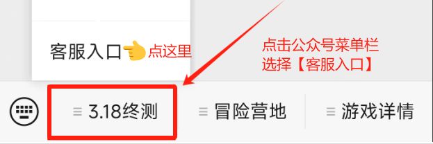 进入塔瑞斯世界公众号,点击菜单栏【3.18终测】→【客服入口】,即可在线咨询客服。