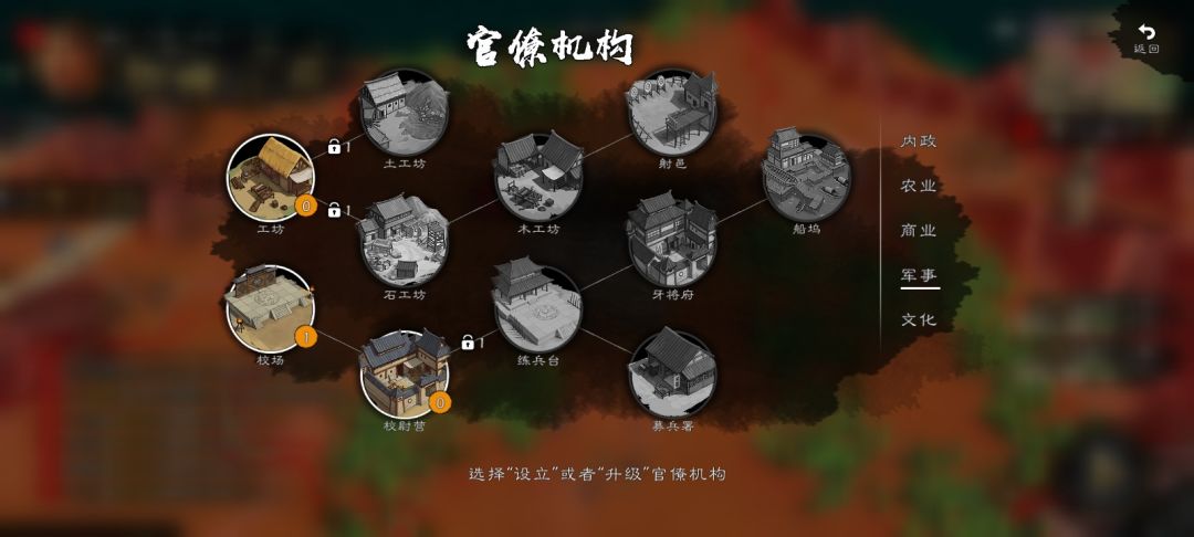 5:官僚机制主要点满箭塔伤害,和募兵所。其余升级内政商业。
