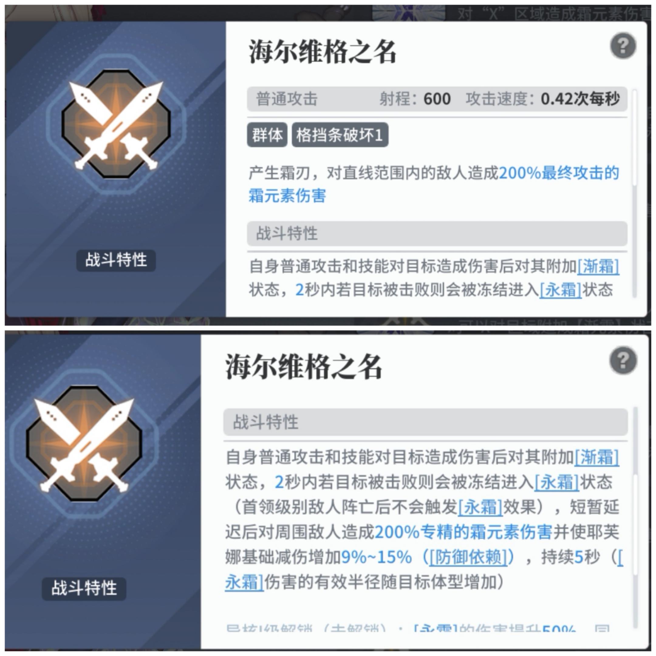 1.普攻不吃专精。她的另外一个队长技是增加普攻伤害,再加上很长时间的大招,次数不多的主动技能,看得出来,普攻在她的输出体系中应该是占比很大的。霜系的另外两个角色比格尼亚和阳玲都可以加攻速,也是为了普攻吧。