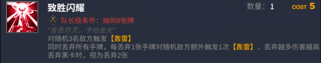 【致胜闪耀】:主要的伤害来源,弃牌和过牌相结合能够打出非常夸张的输出。
