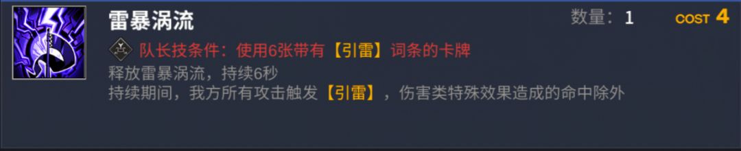 【雷暴涡流】:得意技能其实没有想象中的那么好用,他也是4费,虽然变相的提高了引雷的频率,但是在无限雷启动后手牌出牌优化中,我将这个牌优化掉了,不是完全不用,而是优先级不如【磁暴弹】和菲妮娅的【奔雷】