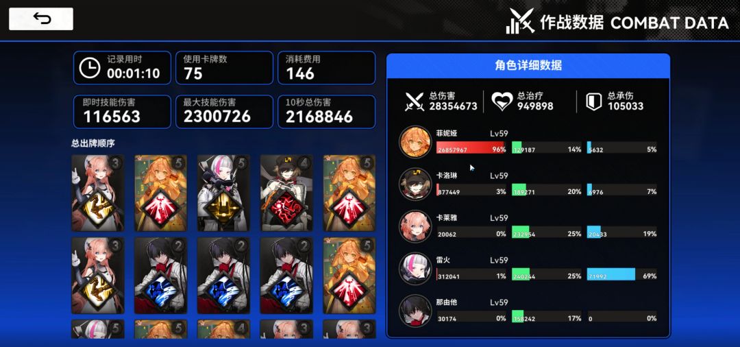 【弃牌雷】在我这里的定位是后期速刷阵容,虽然前期也可以使用【弃牌雷】作为开荒阵容,但是并不能向【那由他苍叶】构成的【立场体系】或者【紫卡队】那样,无脑越级,本质上,【弃牌雷】是在敌人攻破你的防线前,击杀敌人,尽可能的快速破敌,所以,弃牌雷体系的攻略一拖再拖,不想在前期就让萌新投入过多的资源再这个队伍上,因为造价十分的昂贵。