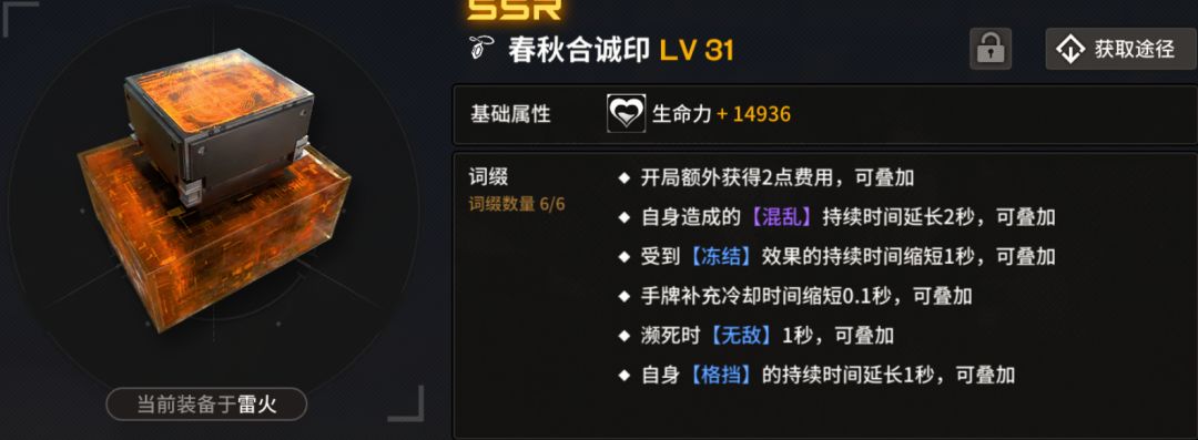 【整备】:开局前3牌-1费用,很好的缓解前期费用压力大的问题,虽然也可以复用春秋印来进行初始费用强化,但是,能白嫖3费,何乐而不为。