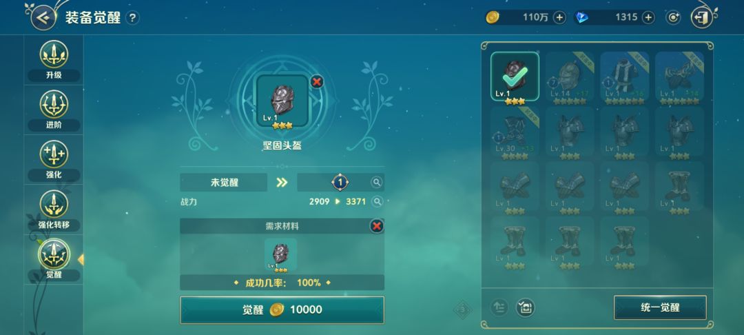 拿三星头盔举例,在觉醒达到3、7、10时,可以分别获得52、104、174的战力加成。