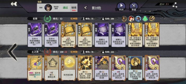 到了化神之后,先d牌,我到化神时已经积累了50次换牌机会,总能d出几张核心牌来,然后围绕着最好凑齐的牌组d牌
