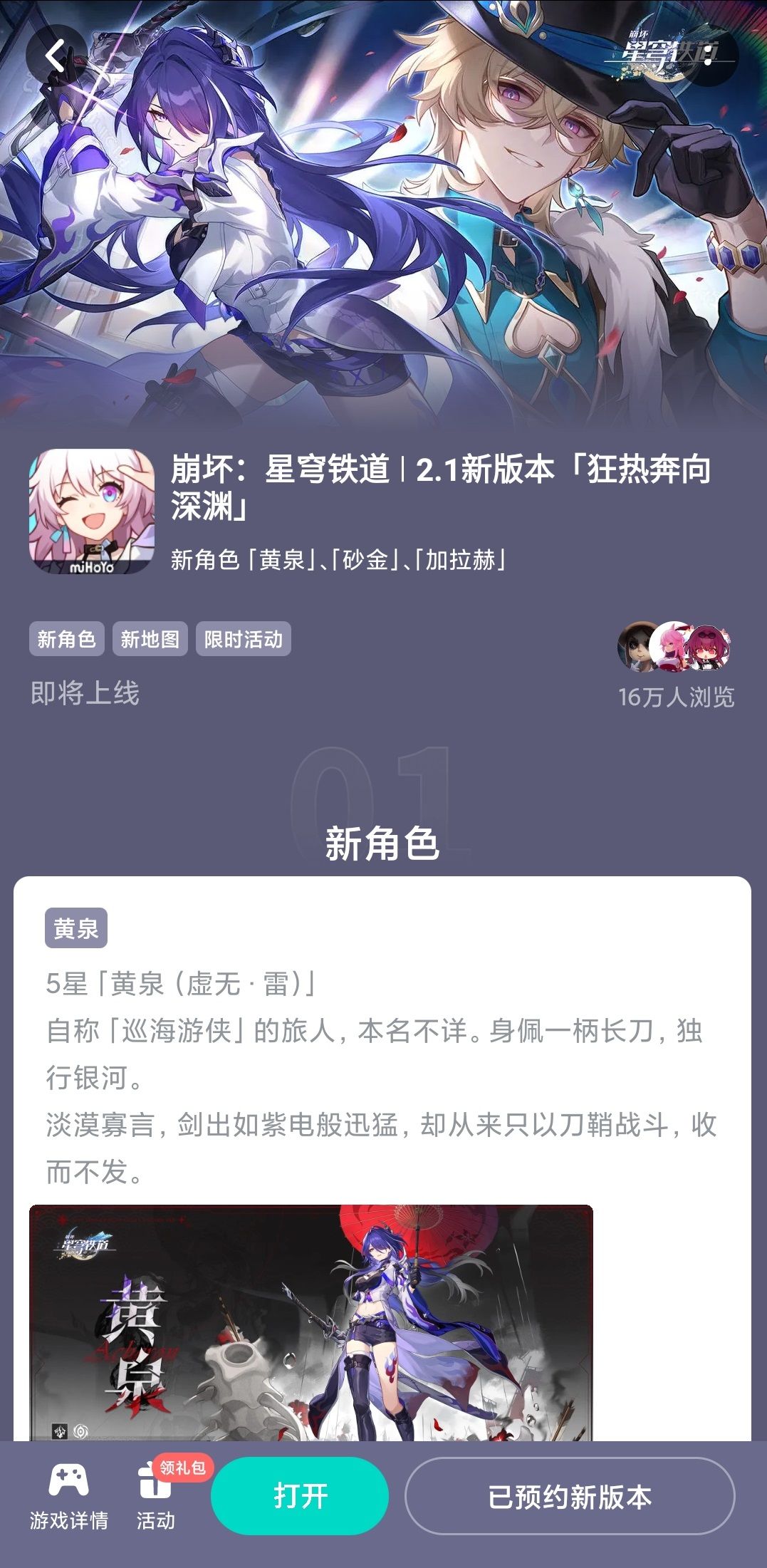 一、前往《崩坏:星穹铁道》2.1新版本预约页面完成预约。