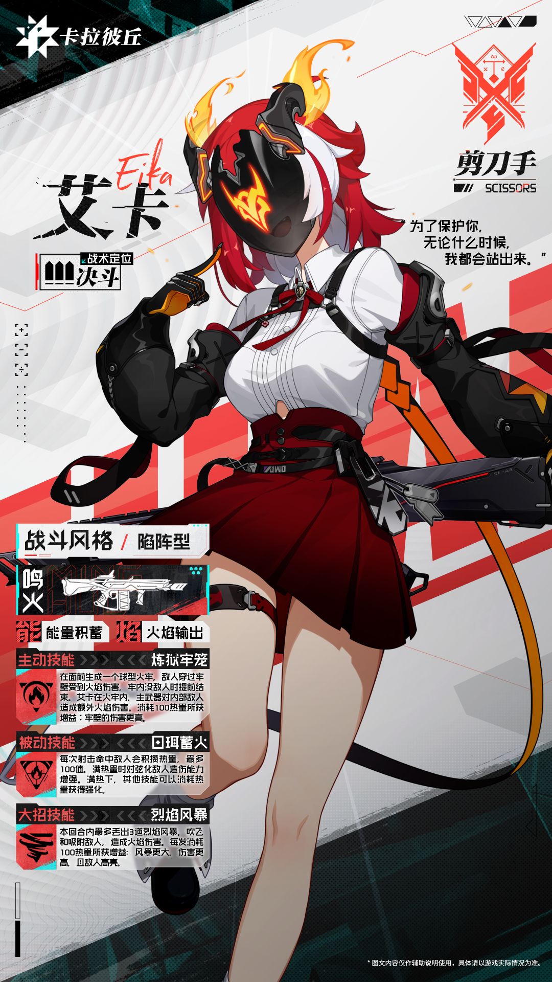 富有生活气息的女高中生,作为剪刀手的志愿成员守护着普雷顿的居住区,拥有操纵火焰的弦能力,擅长制造火焰风暴收割眼前的敌人。