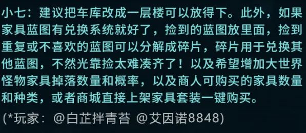 各种蓝图和材料是阻挡小七成为建造大佬的最大问题,许多玩家也是如此,“双五”栏目经常能收到他们的反馈。