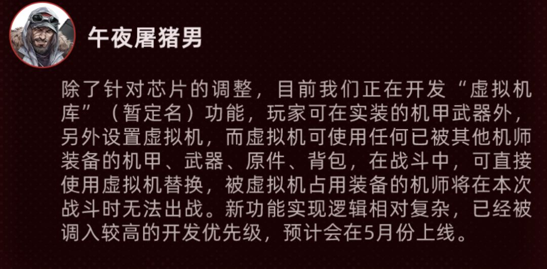 首先针对此次节奏的暴风中心“武装讨伐”副本而言, 官方所反馈的问题基本上和维一上次专门写的游戏问题分析文章里说到的一致,而上图中这位“午夜屠猪男”便是《钢岚》的制作人,其反馈的解决方案也在目前版本的游戏中实装,不过大家对于当前这个优化是否能够满意就得时间来回答了。