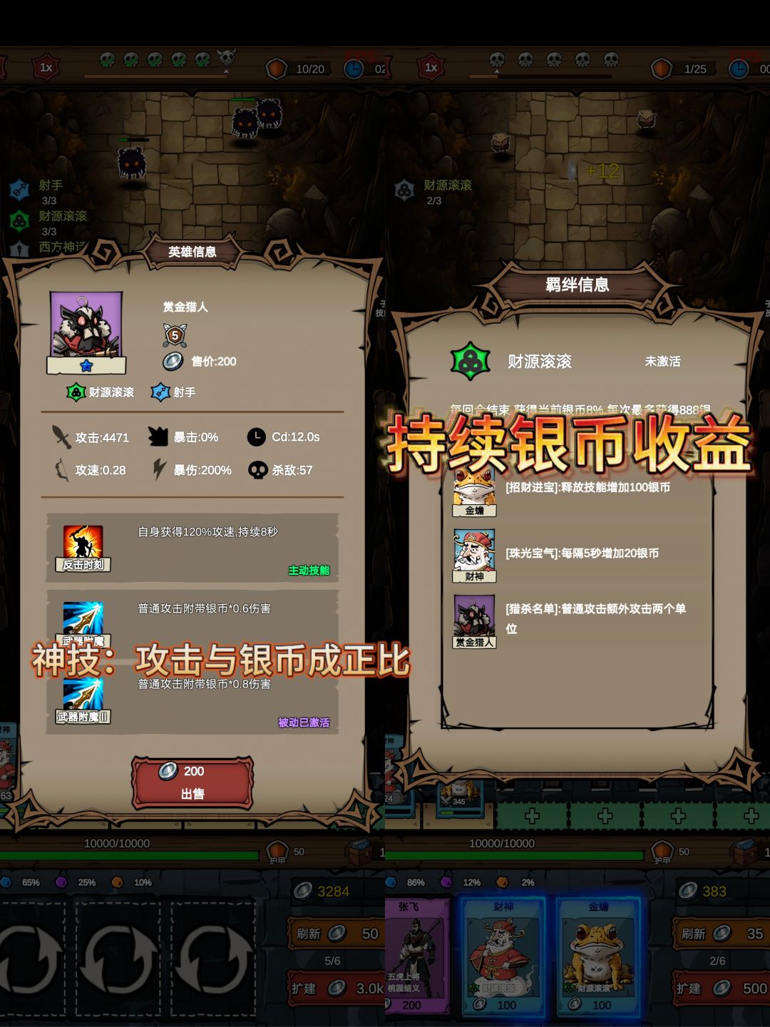 其中赏金猎人是战力王牌,升到五星战力*0.8银币,也就是银币越多,战力越强!!!
