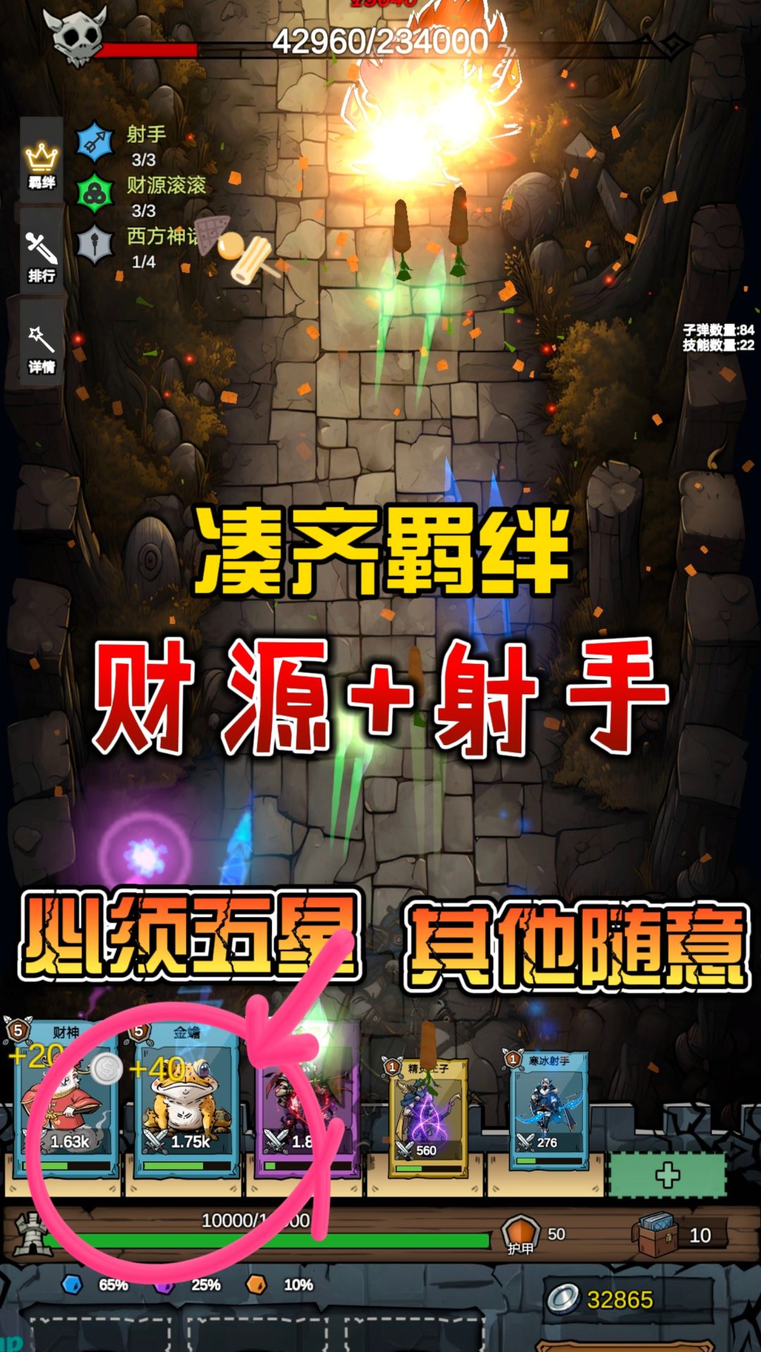 财源滚滚(金蟾+财神+赏金猎人)+射手(寒冰射手+精灵王子+赏金猎人)