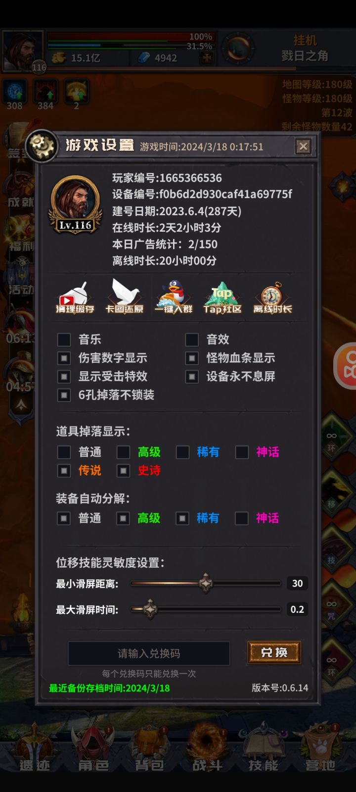 刷挂机记录装备照着搬就行了。等过了十三章再去刷新的挂机记录就好了。155还可以更新装备。有问题留言或者看我主页。从入坑到成型的帖子都有。点赞收藏发大财!!!哈哈哈