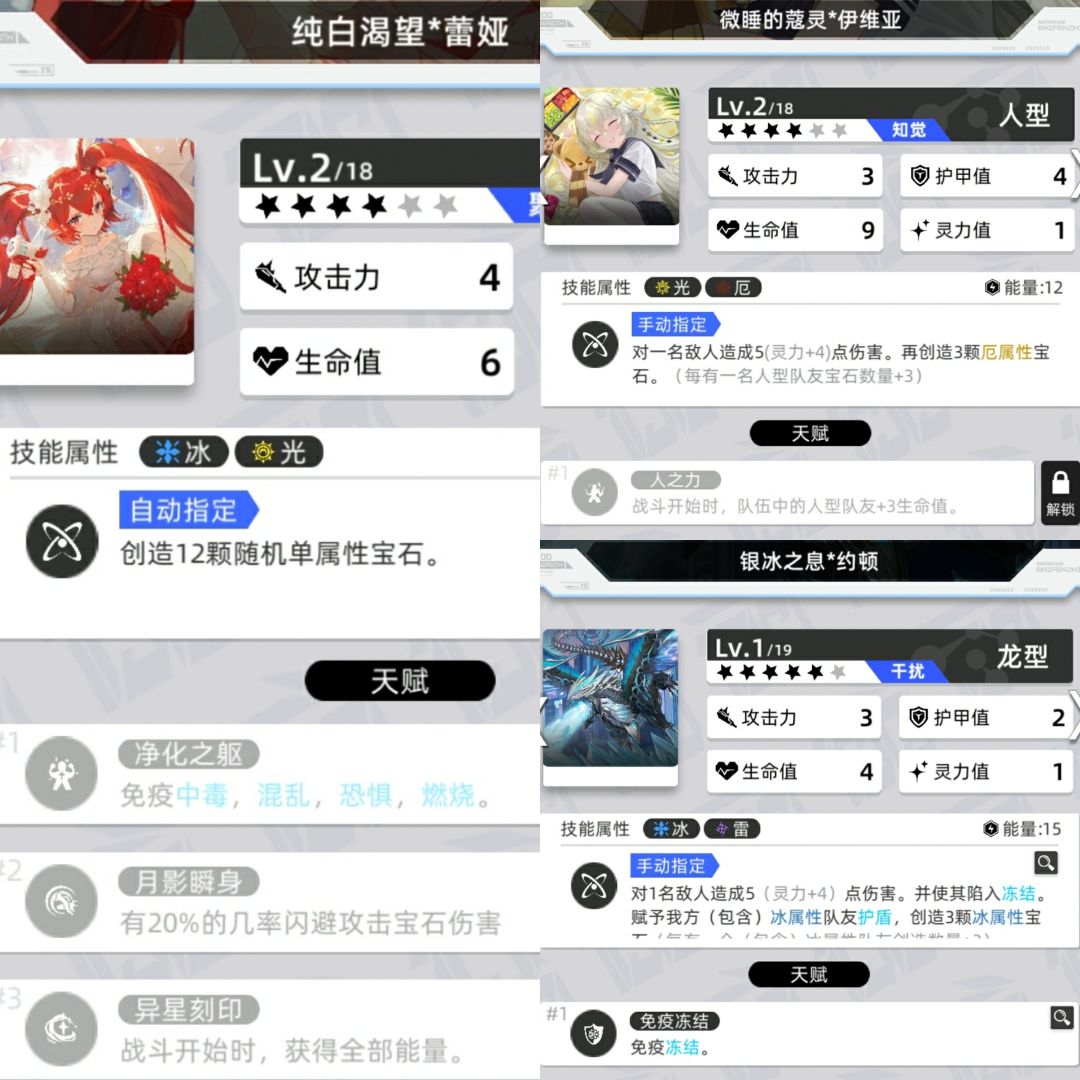 *获得额外回合失败后的情形称作内鬼,因代价较大,所以平常配队的自动战斗设置取四消优先。不过,如果队伍有妮雅加安吉拉、或者冷落雪,可以采用技能优先,因为冰冻加减除能量两种控制手段一起可以降低内鬼情形的损失。比较特殊的是OTK毒队,也是技能优先