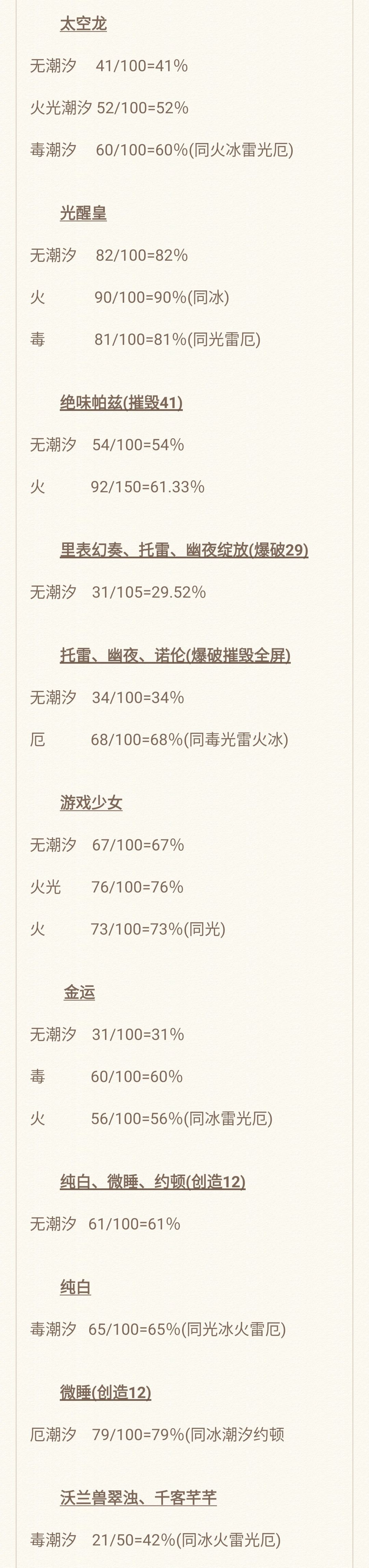 *“潮汐”具体指第三天赋的开局潮汐,百分比为获得额外回合的统计概率