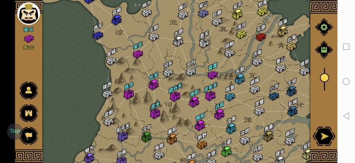 第三年:上郡(小城)孙峻招募张宝,张宝出征朔方,朔方张宝太守。河东(小城)苏飞招募诸贡,华雄出征太原,诸贡出征河内。邯郸(小城)王浑招募莫琼树,莫琼树出征壶关。陇西(小城)蔡邕招募于吉,陇西于吉太守。安定(小城)郭汜装备两盾牌一大刀出征金城,安定张超太守。南阳(大城)樊稠,李傕出征新野。许昌(大城)吕布,王肱出征汝南。